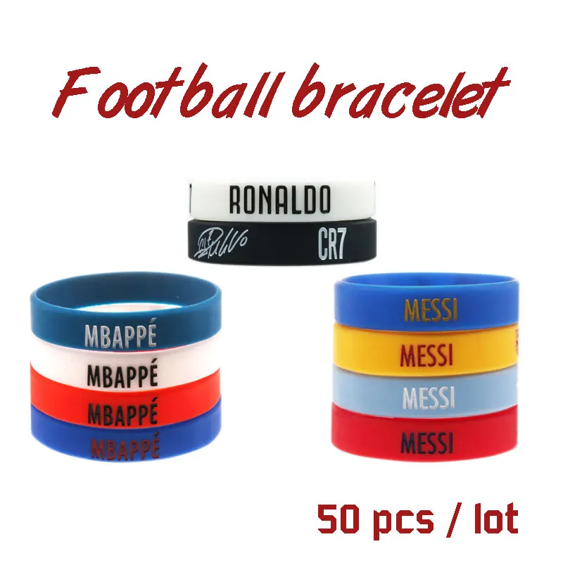 50pcs Mix football Player Silicone Bracelet High Quality Wristband Adult Kids Size Fashion Signatur