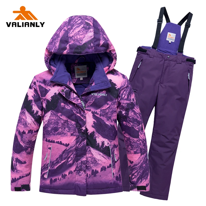2019 Children Winter Snow Suit Kids Girls Ski Suit Waterproof Windproof Kids Warm Skiing Jacket Pan