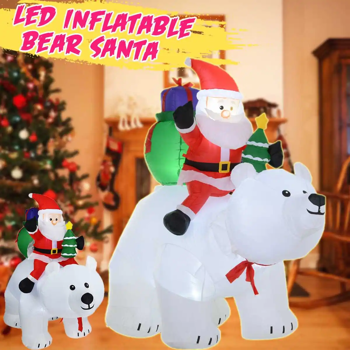 LED Glowing Inflatable Santa Claus Riding Polar Bear Christmas Inflatable Doll for Kids Gift Toys G