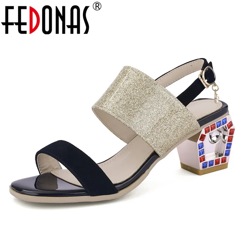 Hot Sale FEDONAS 2019 Fashion Sexy Kid Suede Women Sandals Classic Summer Round Toe Square Heeled Shoes Woma