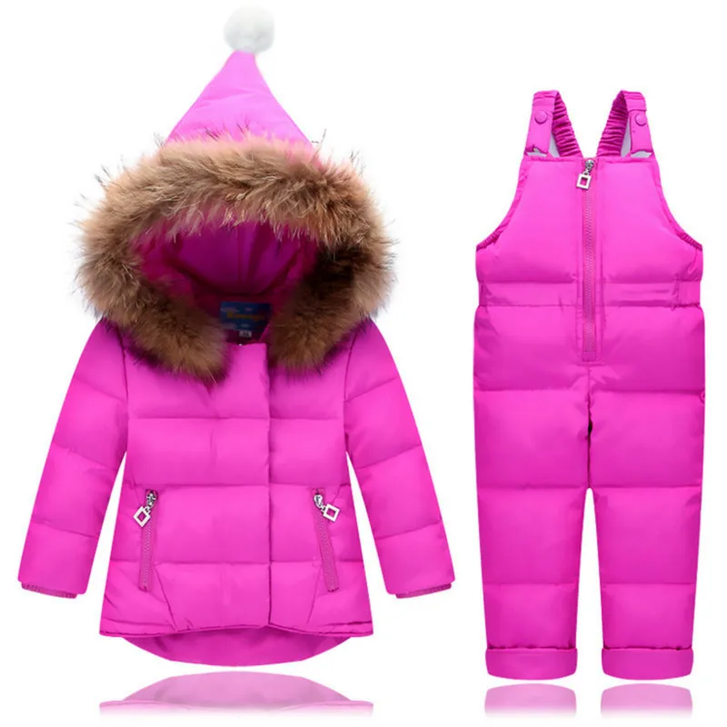 HOT SALE Kids Ski Suit Infant Boys Girls Warm Duck Down Parka Jacket Coat + Bib Pants Snow Wear Winter Child