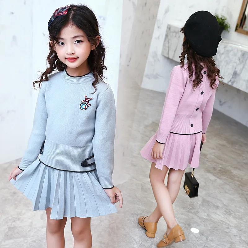 Best Seller Autumn New Pattern GirlChild Fashion Korean Knitting Solid Color Wool Bouffancy Short Skirt Sweater